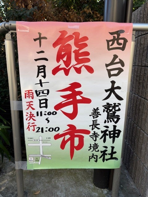 毎年、一見不規則に変動していた日取りが覚えやすくなりました。酉の日ではなくなりましたが、暮れの週末ということで人出も増えそうです。