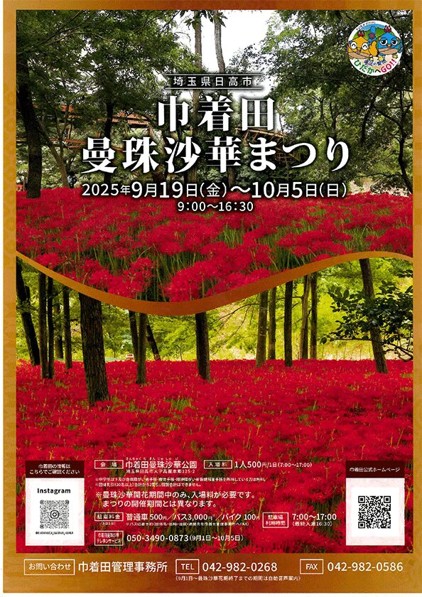 開催期間:2025年9月19日(金)~10月5日(日)9:00~16:30 ※曼殊沙華の開花時期は9月中旬から10月上旬頃です(天候により前後します)