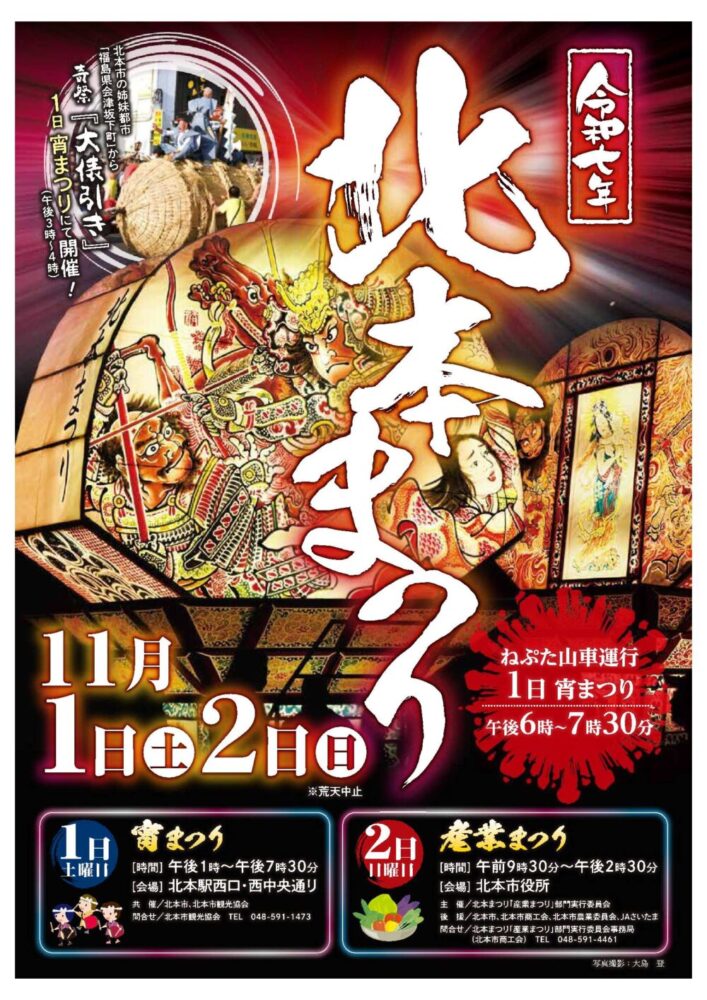 北本まつりは、毎年11月の第1土曜と日曜の2日間行われます。